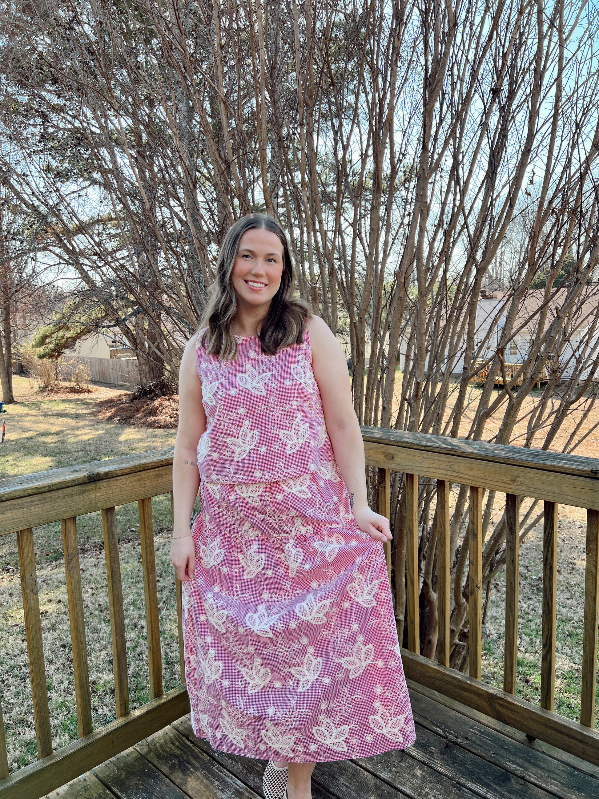 Embroidered top and skirt